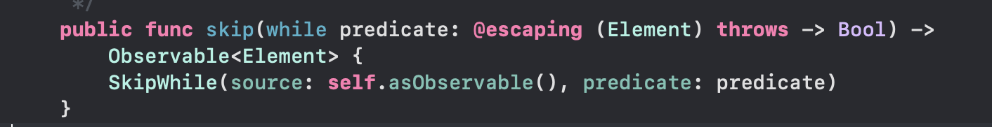 이전에 skipWhile로 쓰던 Operator가 deprecated 되면서 skip(while:) 형식으로 사용해야 합니다!