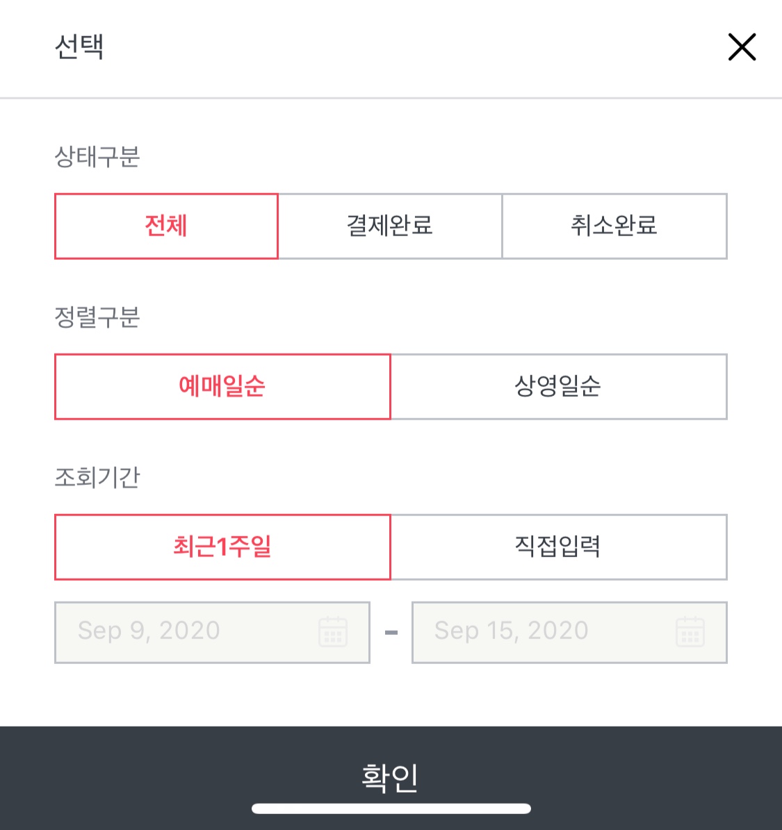 선택된 옵션과 선택되지 않은 옵션에 대해 배경색 등으로 차이를 주어 선택한 옵션을 시각적으로 알 수 있는 기능입니다!